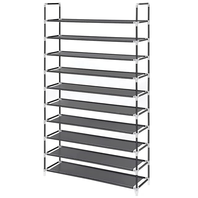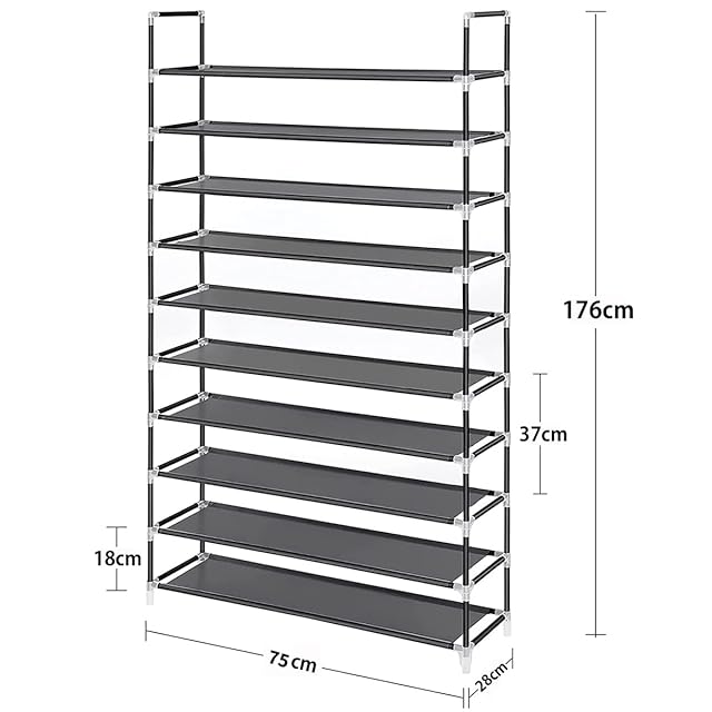 シューズラック 組み立て式 大容量 10段 靴収納 下駄箱 スリムシューズラッ 玄関収納 おしゃれ 靴入れ 靴棚 幅約75×奥行28×高さ176cm (ブラック)