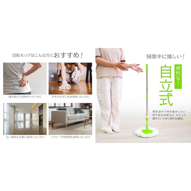 【注意事項】・モップは十分に広げてお使いください。・モップ交換時はモップ部分を足で踏んで柄が可動する方向から90°方向に軽く倒してください。・高いところから落とさないでください。・海外製品で簡易梱包での輸入のため風防に擦れや多少の小キズなどがある場合がございますが、商品自体には問題ありませんのでご了承下さい。・商品はモニターによって色合いが異なって見える場合があります。・仕様/デザインは改良のため予告なく変更することがあります。