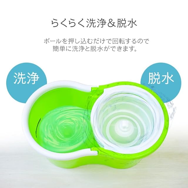 もう手は汚さない!ダブル回転で洗浄×脱水!<br>超カンタン♪もうペダルを踏む必要がありません。<br>モップを上下させるだけで回転します。<br><br>モップ部分はマイクロファイバー!!<br>小さなゴミやホコリなどの汚れがよく取れ、吸水・脱水性も抜群!!<br><br>ベッドの下の隙間やエアコンの上の部分など、お掃除しにくい所や外窓、天井など、いろいろな場所・シーンに大変便利なお掃除グッズです!<br><br>【商品仕様】<br>サイズ(バケツ):(約)幅45cm×奥行26cm×高さ23cm<br>サイズ(モップ):長さ92~120cm<br>重量(バケツ):(約):780g<br>重量(モップ):(約)550g<br>材質:PP、スチール、マイクロファイバー 他<br><br>【注意事項】<br>・モップは十分に広げてお使いください。<br>・モップ交換時はモップ部分を足で踏んで柄が可動する方向から90°方向に軽く倒してください。<br>・高いところから落とさないでください。<br>・海外製品で簡易梱包での輸入のため風防に擦れや多少の小キズなどがある場合がございますが、商品自体には問題ありませんのでご了承下さい。<br>・商品はモニターによって色合いが異なって見える場合があります。<br>・仕様/デザインは改良のため予告なく変更することがあります。<br><br>
