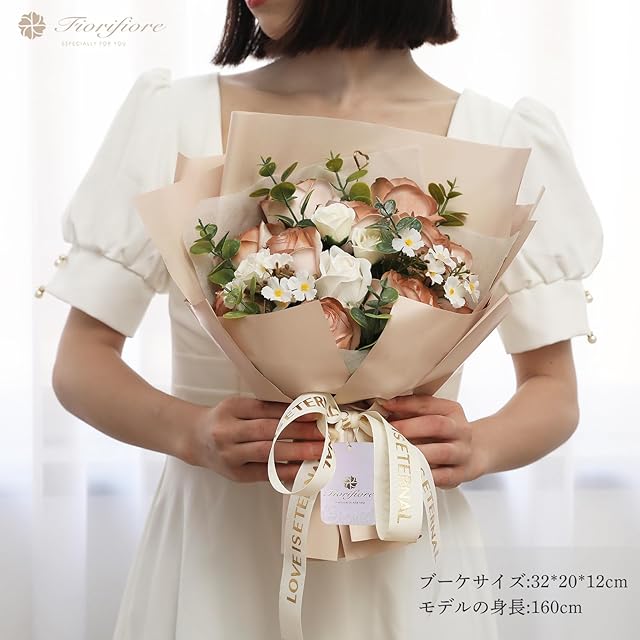 商品名:Fiorifiore 人気 ソープフラワー 母の日 花束 プレゼント ギフト 父の日 誕生日 造花 バラ 18本 女性 結婚祝い 退職 送別 インテリア (Cappuccino)