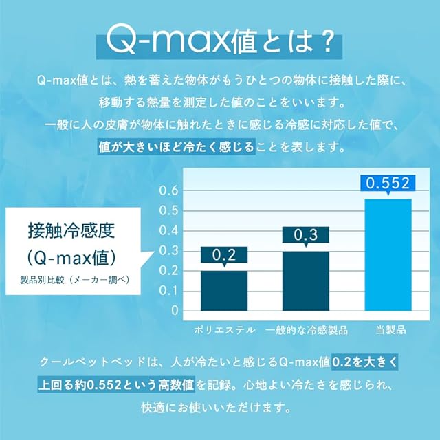 クッションには寝具にも使用される接触冷感生地を使用。Q-MAX接触冷感値0.552W/cm2。