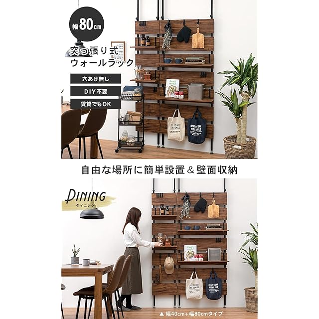 萩原(Hagihara) 突っ張り ラック つっぱり 棚 壁面収納 ウォールラック 【DIY・穴あけ・工事が不要】簡単取付 段差対応 木目調 幅80 スリム ブラウン KTR-3148BB
