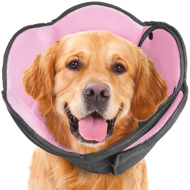 商品名:IECOii エリザベスカラー 犬 猫 調整可能 通気性 軽量 柔らかいイヌ カラー 傷舐め防止 引っ掻き防止 傷口保護 術後ケア 中型犬 ピンク M