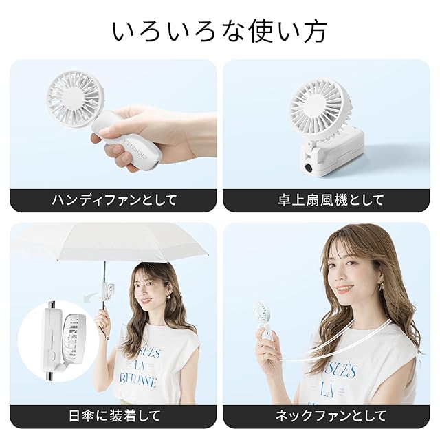 商品名:【最新・日傘対応】CICIBELLA ハンディファン 大風量 7枚羽根 3段階調整 小型 Type-C対応 長時間連続使用 充電式 携帯扇風機 小型 角度調節可 手持ち 卓上 折りたたみ 両手解放 暑さ対策