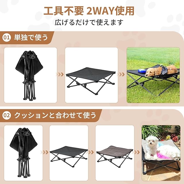 商品名:KingCamp ドッグコット 犬用ベッド ペットベッド アウトドア 折りたたみ 洗える クッション付き 地面から離れ キャンプ 小型犬用 S