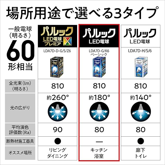 商品名:パナソニック LED電球 口金直径26mm 電球60W形相当 昼光色相当(7.0W) 一般電球・広範囲を照らす広配光タイプ 2個入り 密閉形器具対応 LDA7DGK62T