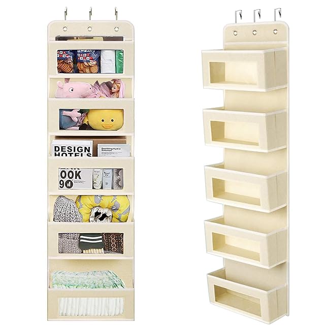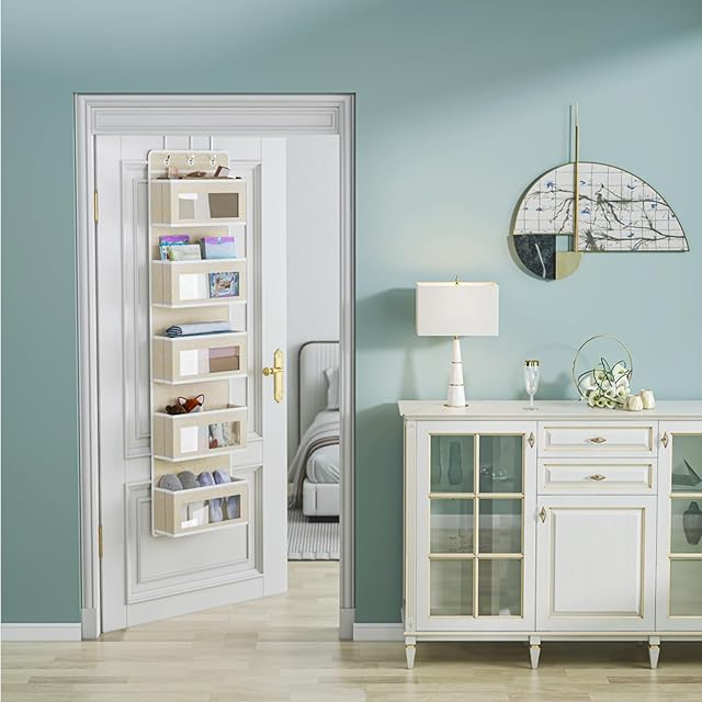 ウォールポケット Whonor ドア掛け収納式ポケット 5段の大容量 透明窓付き 壁掛け収納ポケット 吊り下げ収納ポケット 頑丈な不織布で作られた 耐用 小物収納 おもちゃ 雑誌 書類/漫画などの収納 3x弾性フック付き(ベージュ色)
