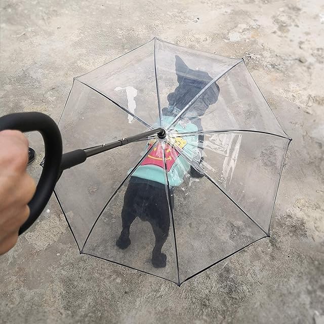 Lesypet 犬用傘 ペット雨具 C型手元 梅雨対策 散歩用透明傘 折り畳み式リード傘 小型犬中型犬に適用
