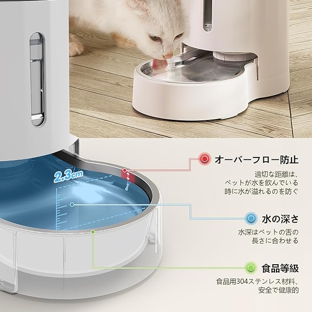 商品名:JUNSPOWペット給水器、4L重力式大容量ステンレス製給水器、自動ペット水飲み器、ホワイト 猫と小型/中型犬用