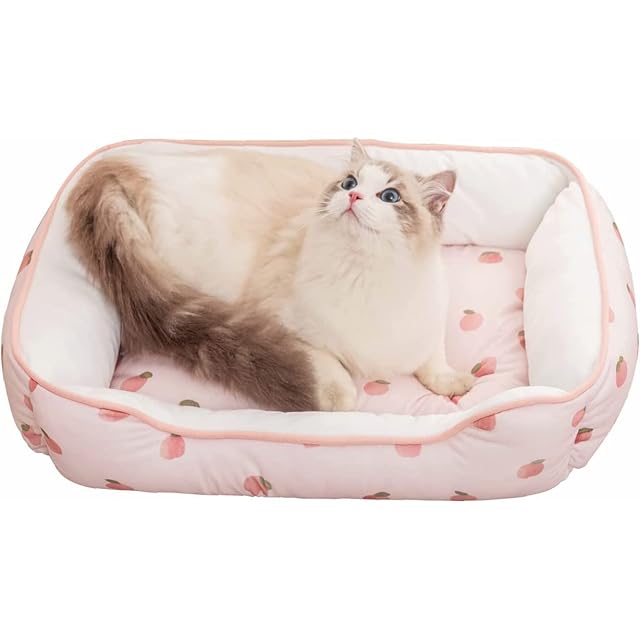 PEOPLE&PETS ペットベッド 夏用ひんやり冷感 暑さ対策 猫 犬 クールソファー 毛が引っ付きにくい 通気性いい 洗える 滑り止め ピーチ M 外径約57x43x15cm