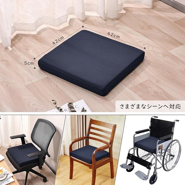 商品名:Baibu Home 座布団 椅子 クッション 低反発+高反発 ウレタン クッション 42×42×5cm 2層構造 ネイビー カバー洗える