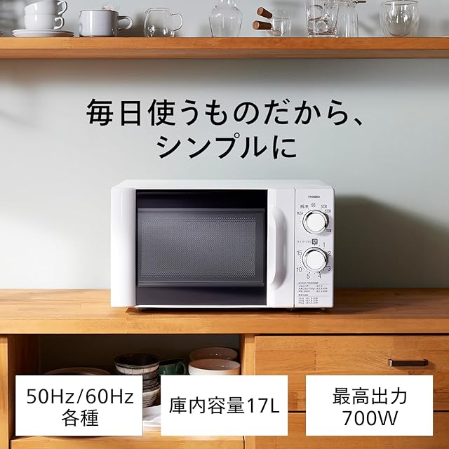 商品名:ツインバード 電子レンジ 【東日本専用(50Hz)】 大きな文字で見やすい 単機能 一人暮らし ターンテーブル 17L 6段階出力切替 700W 15分タイマー ホワイト DR-D419W5