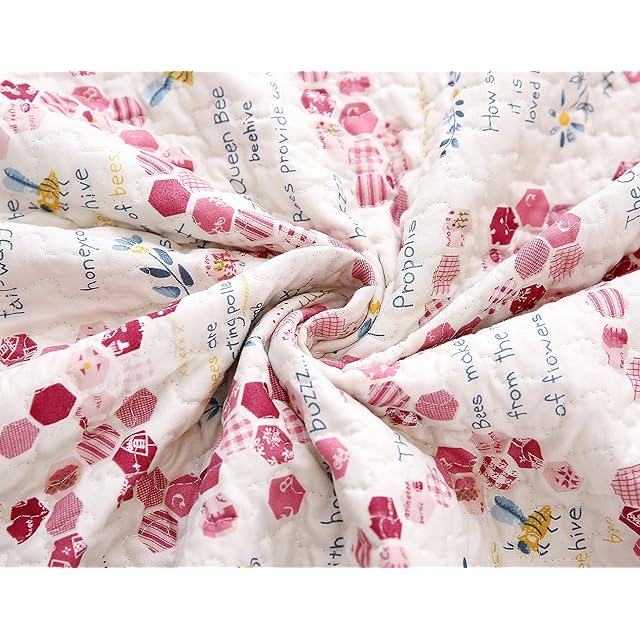 JEMA マルチカバー キルトカバー ベッドカバー ソファカバー 水洗いキルト キルトケット リバーシブル 四季通用 約190X190cm レッド ビー柄