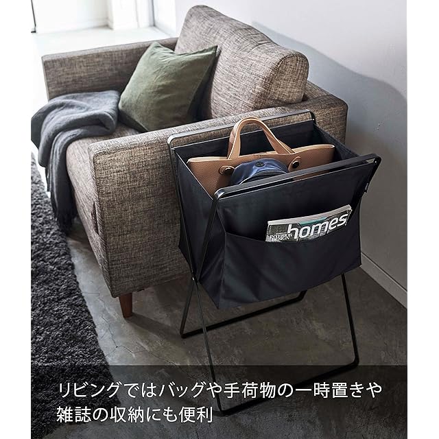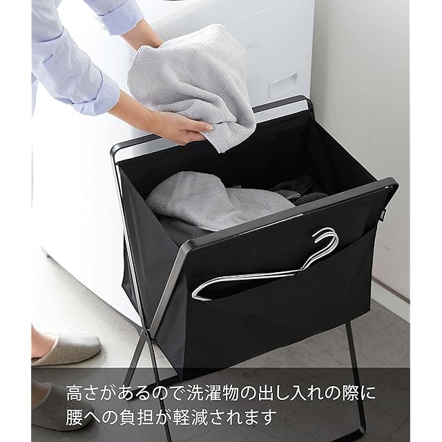 商品名:山崎実業(Yamazaki) 折り畳み 高床式 ランドリーバスケット ブラック 約W46XD35.5XH70cm (使用時) タワー tower ランドリーバッグ 折りたたみ 洗濯カゴ 5662