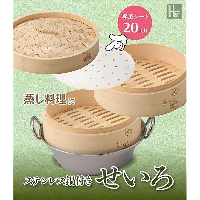 竹セイロ2段(本体2個蓋1個)鍋つきセットです(IH対応)。 セイロ材質:竹 鍋材質:ステンレス