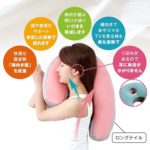 横向きに寝ることで、開口することが減少し舌根が気道に落ち込むのを防ぎ、いびきを軽減します。
