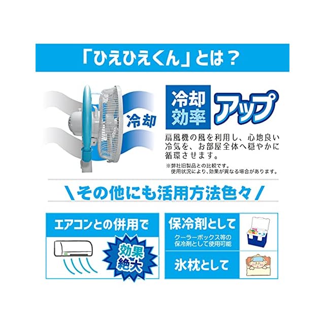 扇風機に使うだけでなく、クーラーボックスの保冷剤として、発熱時や暑さで寝付けない時の氷枕としてもお使いいただけます!