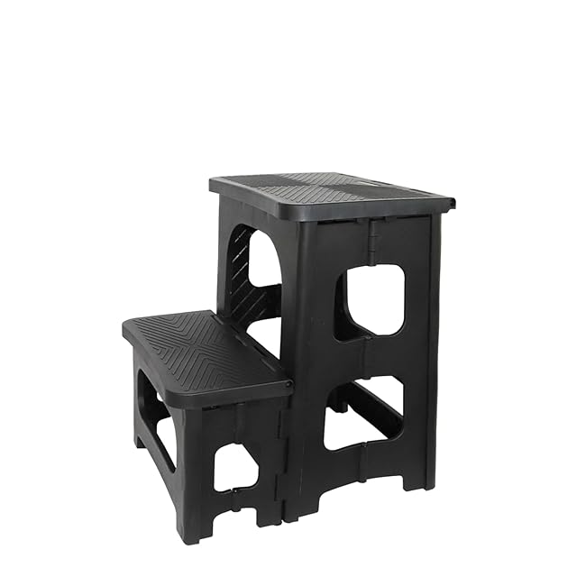 GOODCHI 踏み台 脚立 折りたたみ式 ステップ台 2段 ポリカーボネート製 耐荷重150kg 高さ43cm 軽量 滑り止 折りたたみチェア 玄関台 洗車 踏み台 (ブラック)