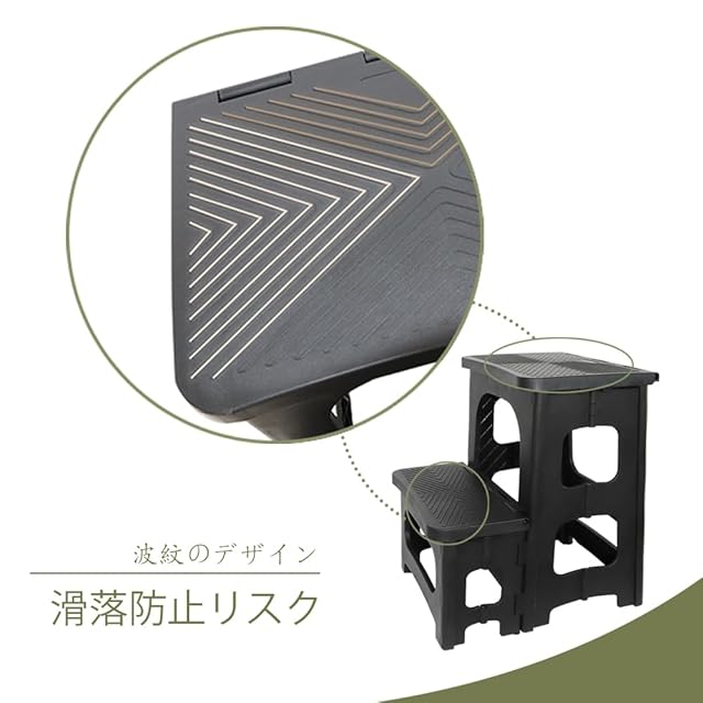 商品名:GOODCHI 踏み台 脚立 折りたたみ式 ステップ台 2段 ポリカーボネート製 耐荷重150kg 高さ43cm 軽量 滑り止 折りたたみチェア 玄関台 洗車 踏み台 (ブラック)