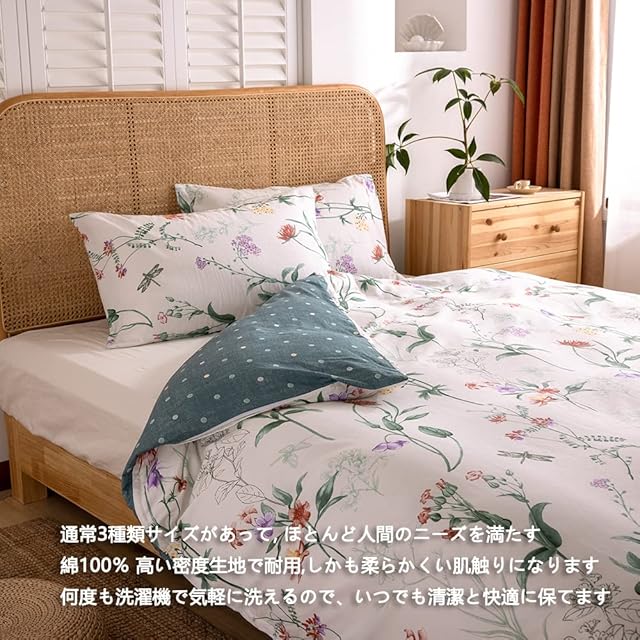 【材质】 綿100% 高い密度生地で耐用,しかも柔らかくい肌触りになります。 カバーの両サイドにファスナー付き。端から端まで開いて布団の出し入れも簡単・便利。