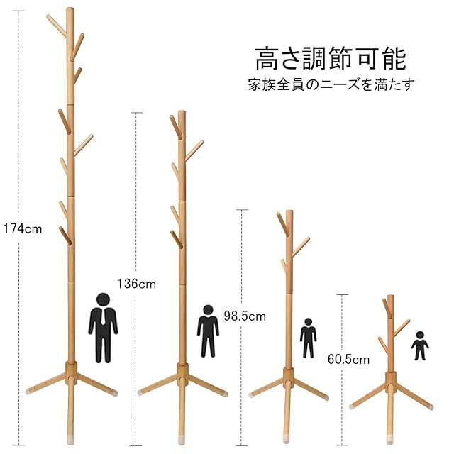 【天然木の質感】 材料は、柔らかい松ではなく、より高価な硬くて滑らかなブナです。天然の木を加工して出来たポールハンガーですので、表面は手触り良く滑らかな仕上がりで、丈夫である。環境に優しい塗装、ホルムアルデヒドなし。樹木の外観は自然の美しさを持っています。