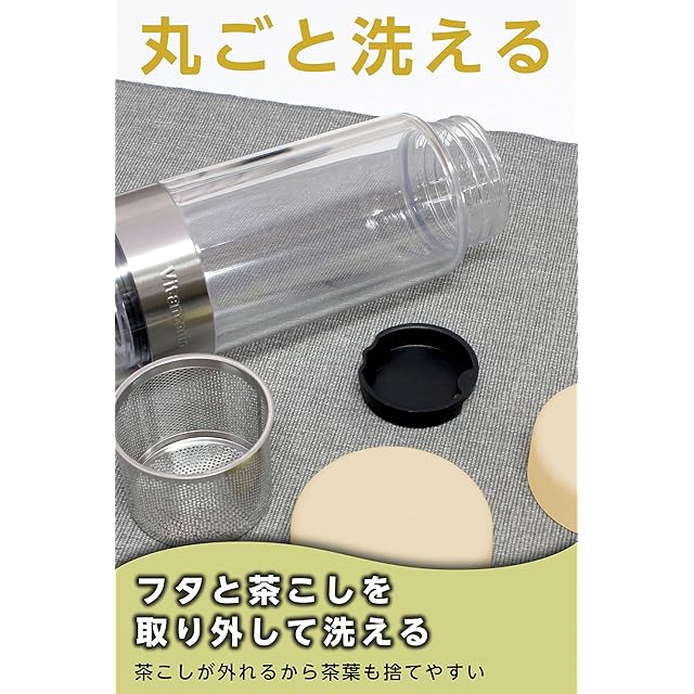 ✅【一体型で便利に使える!ティーポットとタンブラーがひとつになったティーボトル】忙しい毎日でも、手軽に美味しいお茶を。Vitantonioのツイスティープラスはティーポットとタンブラーがひとつになったティーボトルです。オフィスや外出先でも、いつでもどこでも、お好みの茶葉で淹れた「紅茶」「ハーブティー」「お茶」などを楽しめます。茶こしは取り外し可能で洗いやすい。
