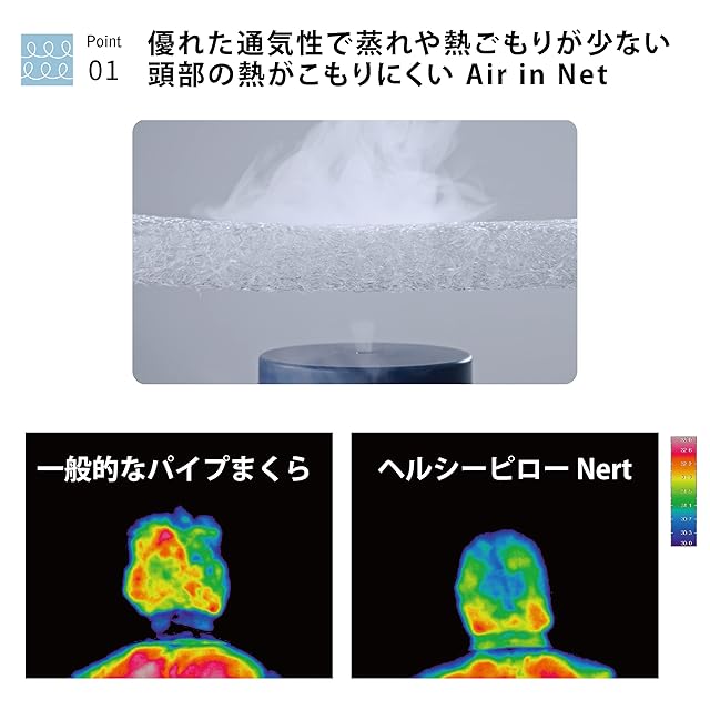 熱がこもりにくいネット構造の枕。頭部に熱がこもって熱く感じやすい方や、汗かきの方におすすめです。