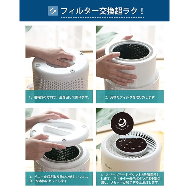 【簡単なお手入れ】①純正HEPA 3層プレミアムフィルタの効率を高め、寿命をより長くするためには、プレフィルターの掃除を1ヶ月に1度行ってください。②柔らかいブラシや掃除機のホースを使用してフィルタの外側を掃除して、髪の毛、埃、および大きなゴミを取り除いてください。(※注意:水洗いはできません)。