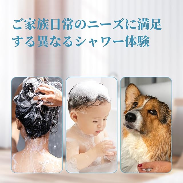 [5階段モード] レイン、SPA、ミストの3種類の吐水方から5つのシャワー吐水モードが組合せできます。●モード①:たっぷりな水量で泡や汚れ等を一瞬に流せます。●モード②:強さと柔らかさを両立させていて特別なシャワー体験をもたらす。お子様におすすめです。●モード③:ミストのように噴水して、毛穴の根元まで浸透して汚れを洗浄する。●モード④:勢いのある水流で素肌にほどよく刺激をあげる。体に当てて、お湯で暖かく浴び心地がよいです。●モード⑤:吐水の力強さで毛穴の奥に詰まった体の汚れを浮き上げらせて取り落とす。 異なるシャワー心地が楽しめる5つの吐水モードですが、ご自身が心地良いと感じる強さや水流に調整することができます。ご家族の皆様の好みやニーズに応じて5段階モードリングを回して簡単に切り替えられます。