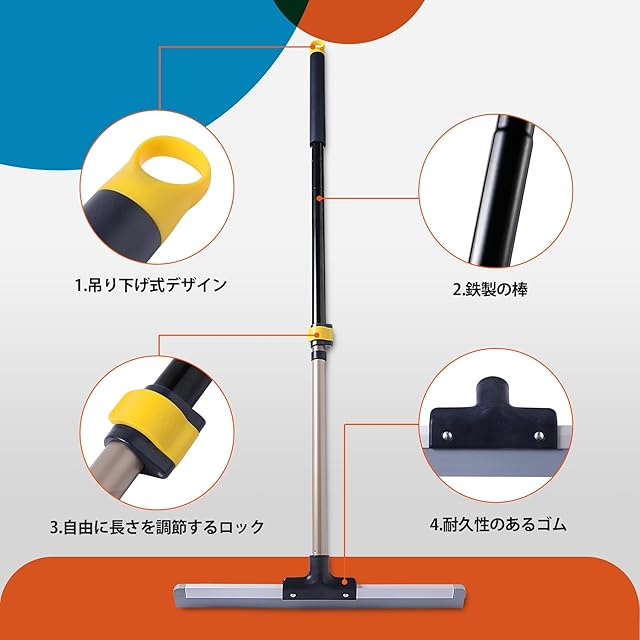 【いいデザイン】ドライワイパーのポールは鉄ポールで非常に丈夫だです。 このドライワイパー は手に届かない場所を掃除できます、使いやすく窓掃除を短時間にすることができます。 組立のタイプ、収納簡単です。
