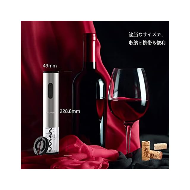 【電池式軽量、便利 】単三形電池4本電池を取り付けるタイプです。充電式よりすぐに使用できます。非常に軽くて扱いやすいです。省エネルギーで使用頻度が高い方でも便利に使えます。ただボタンを押すだけで、女性とお年寄りでも簡単にコルクが抜けます。