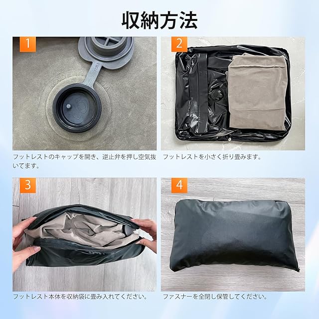 このエアー足枕はPVC素材で作られた製品で、飛行機、車、新幹線、ホームトオフィスで自由に使えます。違った二つの大きなキャップによりお好みの高さと硬さを一段階、二段階、三段階調節できます。空気入れ抜きも簡単で収納も便利です。