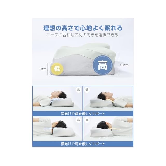 【お好みの高さが選べる】高さが選べる2WAYデザイン!9cmと13cmで、好みに応じた配置、枕 を裏返すことで異なる感触を体験可能。 横向き寝枕 にもぴったりです。自分に合った高さで、よりリラックスした眠りを体験。