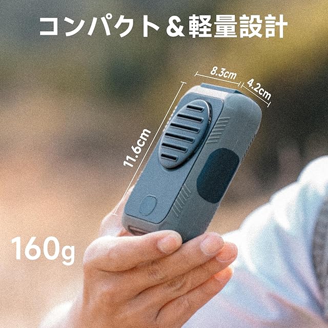 【シーンに合わせて使い分け・4WAY仕様】 ウエストに装着できるクリップ付きで、両手が自由になる腰掛けスタイルが可能。重さわずか160gと軽量なので、手に持っての使用もラクラク。さらに、平らな場所に置いて卓上ファンとして使えるほか、付属のストラップを使えば首から下げて使用することもできます。