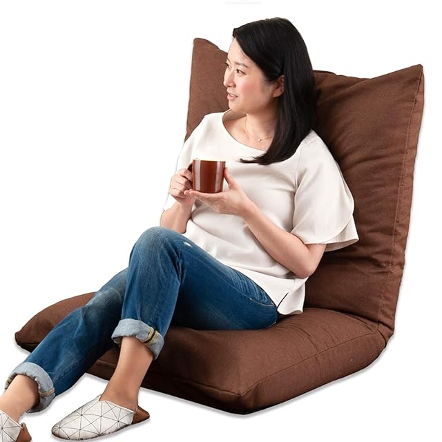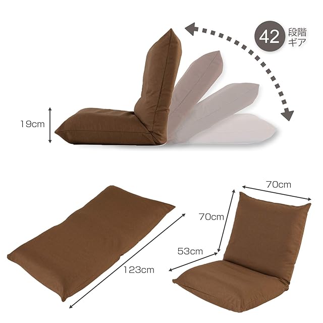 ドウシシャ 座椅子 一人掛けソファー ゆったりワイド大きい 洗えるカバー付き 42段階リクライニング 背もたれ ハイバック 180度フラット可能 寝れる 姿勢安定 立体形状座面 19cm肉厚クッション あぐら座椅子 大きい AKDZ-BR