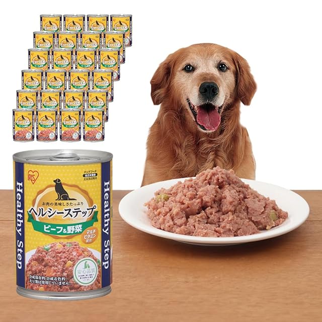 アイリスオーヤマ ヘルシーステップ ドッグフード 総合栄養食 ビーフ&野菜 合成着色料・合成保存料不使用 375g×24個セット