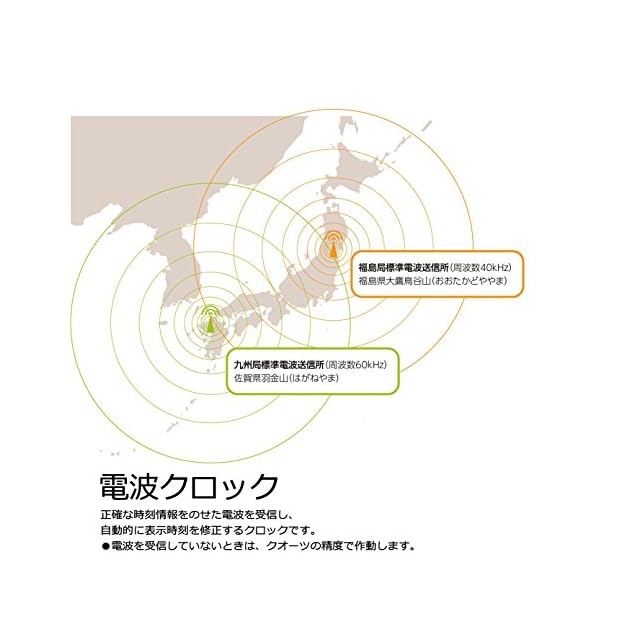 ムーブメント:電波修正機能(40kHz/60kHz自動選局)/電波OFFつき