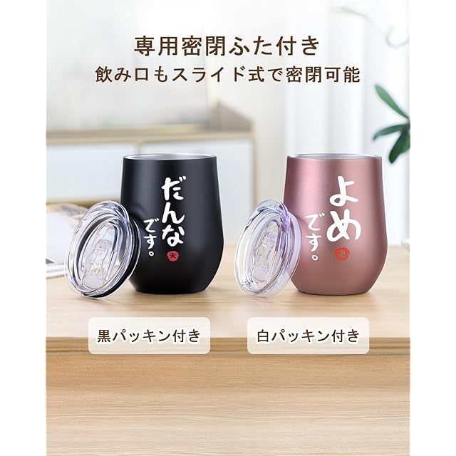 商品名:結婚祝い 結婚記念日 プレゼント ペア タンブラー 夫婦 誕生日祝い ペアマグカップ ビールグラス よめ だんな 密閉ふた付き 桐箱入り メッセージカード付き 化粧箱入り 保温保冷 真空断熱 350ml