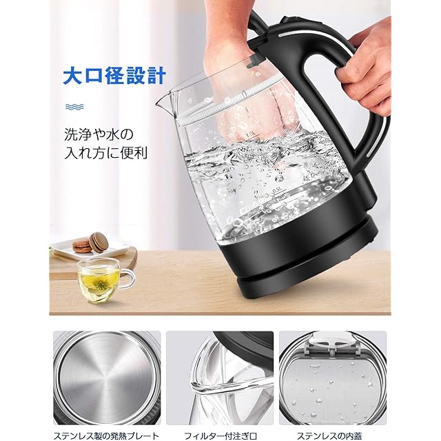 商品名:【二重構造・火傷防止】HAGOOGI 電気ケトル ガラス ケトル 透明 大容量 1L 耐熱ガラス 触れても熱くない 湯沸かしケトル 急速沸騰 LEDライト付き 電気ポット 一人暮らし コンパクト 湯沸かし おしゃれ 無臭無害 お手入れ簡単 空焚き防止 沸いたら自動でオフ コーヒー 紅茶 お茶 (ブラック)