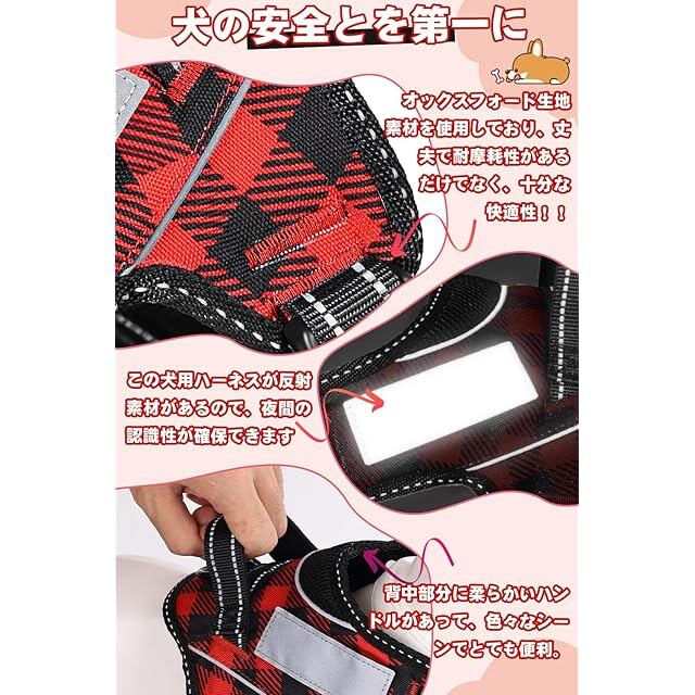 商品名:【ドッグトレーナー推薦】OGURIYA犬 ハーネス 喉に優しい 小型犬 中型犬 大型犬 着脱簡単 超可愛い色 ネームプレート 夜間反射 サイズ調整可能 犬体工学に基づいた 7色選択(赤黒チェック柄,S)