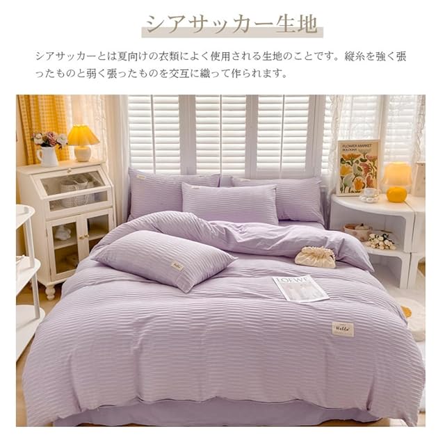 布団カバー 寝具カバー 夏用 3点セット 150×210cmシングル シアサッカー生地 掛け布団カバー ボックスシーツ 枕カバー 洋式・和式兼用 おしゃれ 北欧 肌触り 無地 ベット 洗濯機可 ホテル仕様 丸洗いOK 速乾 オールシーズン