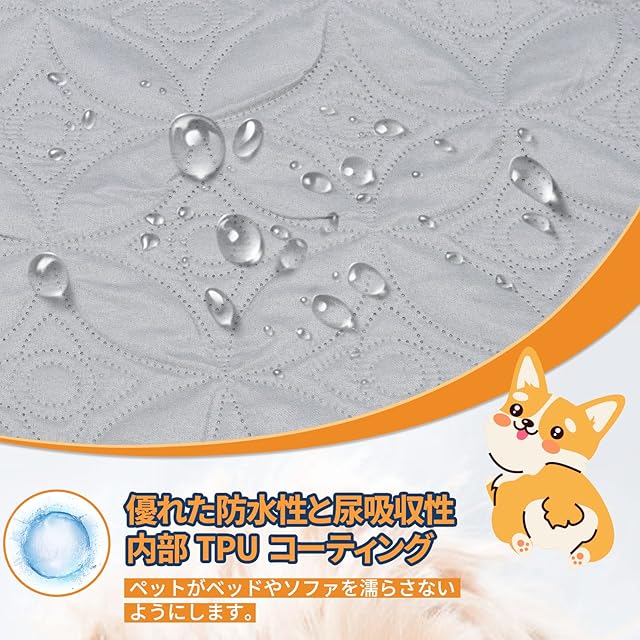 【防水&四重構造&漏れ防止】 :防水ベッドシーツは4層の保護を提供し、内層は高品質の吸水綿とTPU防水綿は超吸収を持って、二重の防水保護を提供します。 防水ベッドカバーの端におしっこをしても、すぐに吸水するので床に漏れることなくキャッチ。 赤ちゃんのおねしょシーツとしても使えます。お子様やペットがベッドやソファを濡らすのを防ぎます。床やカーペットが濡れる心配がありません。犬や猫を飼っている人に最適です。一年を通して長い期間、快適にお使い頂けます。