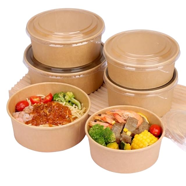 Asdays 使い捨て弁当箱 使い捨て どんぶり 使い捨て容器 蓋付き ランチボックス クラフト紙ボウル 紙皿 (500ml, 10個セット)