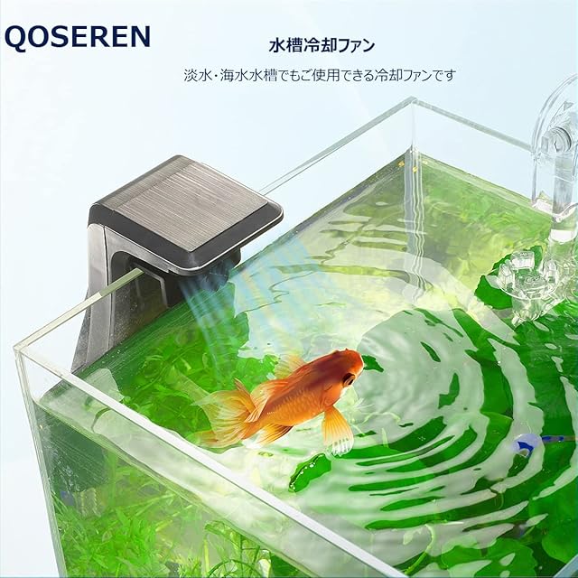 QOSEREN ミニ水槽水槽 冷却は騒音防止のデザインを採用して、普通の水槽 ファンより静かです。水温を約2-3度下げる冷却力。水槽 冷却として、夏場の水温上昇対策に適用しております。風量調整が2レベルあり、室温に応じて適切な風速を選択できます。ネジで水槽に固定するだけ。取付け、取外しも簡単調整できる設計で、9MM以下の厚さのガラスに適用できます。5Vの安全電圧を使用することで、、低エネルギー消費、電力を節約するだけでなく、QOSEREN 水槽 小型 冷却 クーラーは魚に快適な夏をもたらしてくれます。