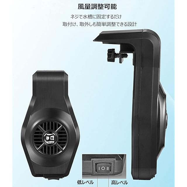「風量調整可能」 2段階風量調整可能な水槽 クーラーです、ご必要に応じて簡単に選択できます。水温上昇防止に大活躍のクールファンシリーズ、水面への強力送風で水温は2〜4℃に下がることができます。