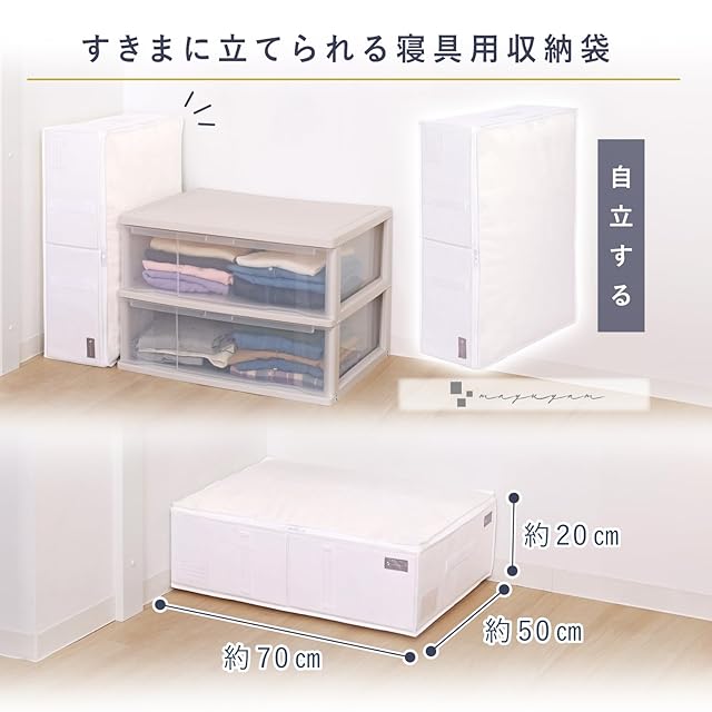 商品名:アストロ mayuyam 収納袋 寝具用 ホワイト 【通気性の良い不織布 収納ケース】 羽毛布団 毛布 タオルケット 収納ボックス インスタグラマーMAYUさんとのコラボ開発商品 オフシーズンの布団をホコリから守る 保管袋 シンプルで使いやすい ネームホルダー付き 厚紙入り 埃除け 防塵 クローゼット 押し入れ収納 折りたためる mayuyamシリーズ 組み合わせ自在 860-03