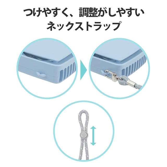 手ぶらで使える首かけファン。屋外でのイベントやスポーツ観戦、ちょっとした外出でも大活躍のハンディファンです。首にかけて使うので、スマホや飲み物を持ちながらでも涼むことができます。