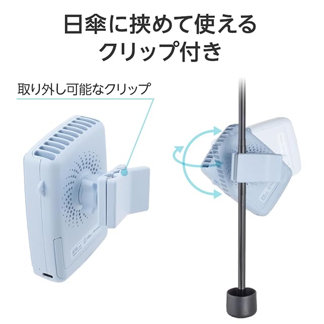 商品名:グリーンハウス 手ぶらで使える首掛けファン 風量3段階 日傘に挟めるクリップ付 Type-C ブルー GH-FANSIG-BL