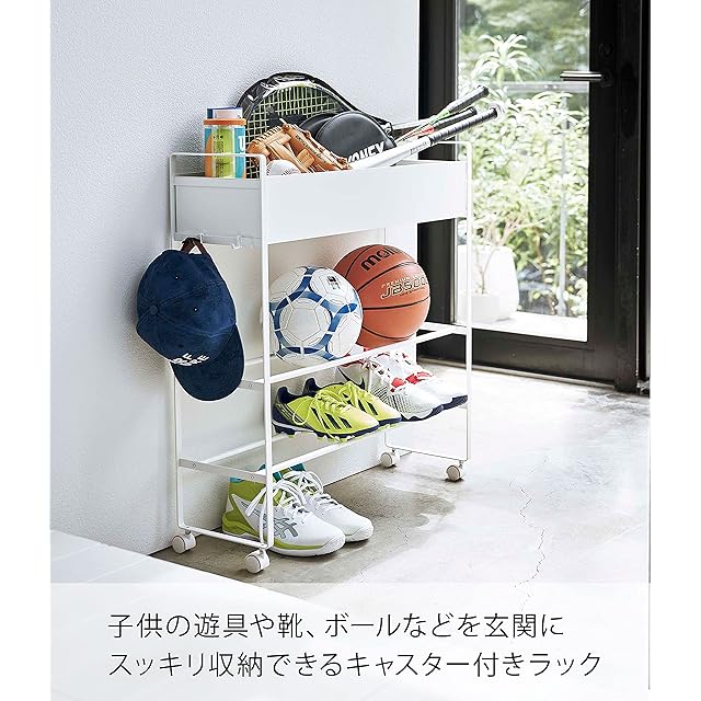 山崎実業(Yamazaki) キャスター付き 玄関収納 ラック ホワイト 約W74.5(キャスター含まず:W70)XD22XH74.5cm タワー 仕切り付き 多機能収納ラック 5278