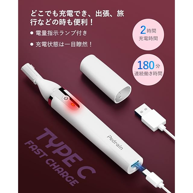 【Type-c充電式&LED指示ランプ】Type-c充電式でいつでもどこでも簡単に充電できます!充電式電池が使用できるので、何度も繰り返し使用可能と経済的かつエコなのはメリットです。1回の充電で約180分継続使用できるのもポイント!LED指示ランプ付きでバッテリーの残量を把握できて安心に使えます。
